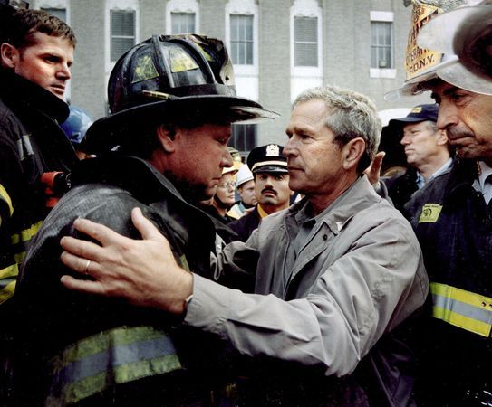 14 სექტემბერს, ინციდენტის ადგილის სტუმრობის დროს, აშშ-ის პრეზიდენტი ჯორჯ ბუში ამხნევებს ნიუ-იორკელ მეხანძრეს, ლენარდ ფელანს. ლენარდის ძმა, კენეტი, ასევე მეხანძრე, იყო იმ ასობით ადამიანს შორის, რომლებიც უგზო-უკვლოდ დაკარგულად გამოაცხადეს.