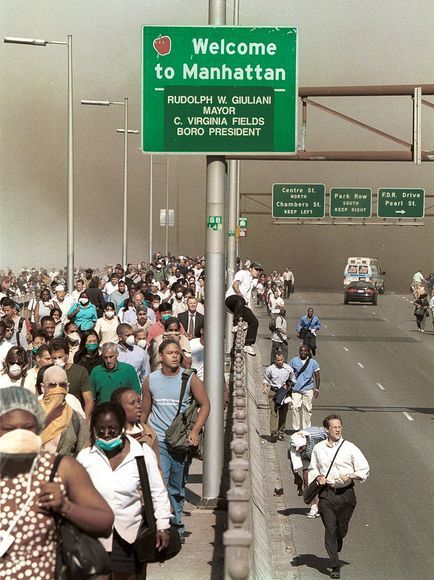 ნიუ-იორკის ერთი ჩვეულებრივი სამუშაო დღე კატასტროფული მოვლენების დღედ გადაიქცა. კვამლიანი და ქაოსური მანჰეტენიდან გამოქცეული ხალხი ბრუკლინის ხიდზე მირბის.