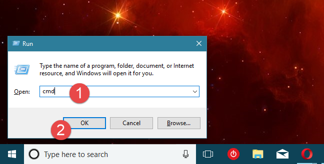 3.გავხსნათ Command Prompt იგივე cmd.exe (მოძებნეთ cmd ან გამოიყენეთ ცხელი კლავიში Windows Key+R).