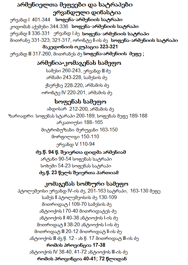 ამ ერს – მოგვითხრობს ტაციტუსი – ადამიანთა ბუნებისა და ქვეყნების მდებარეობის მიხედვით, ადრიდანვე ორბუნებოვანი ხასიათი ჰქონდა, რადგან, მართალია, დიდ მანძილზე ეკვრის ჩვენი პროვინციების საზღვრებს, მიდიაშიც დიდ მანძილზე იჭრება. ასე რომ ისინი, ორ უზარმაზარ სახელმწიფოს შორის მოქცეულნი, რომლებთანაც, რაკი რომაელები ეზიზღებათ, პართელებისა კი შურთ, ხშირად არიან მათთან უთანხმოებაში. იმ ხანად მეფე არ ყავდათ, ვონონის მოშორების შემდეგ, მაგრამ ხალხის სურვილი პონტოს მეფის პოლემონის ძის ზენონისაკენ იხრებოდა; რადგან ამ უფლისწულმა, ადრე ბავშვობიდანვე სომხური წესრიგისა და ჩაცმულობის მიმყოლმა, ერთნაირად მოინადირა მაღალი და დაბალი ფენების გული ნადირობის, ქეიფისა და ბარბაროსთათვის სხვა საყვარელი დროსტარებებით. ამიტომ ქალაქ არტაქსატაში, წარჩინებულთა თანხმობით, დიდძალი ხალხის წინაშე გერმანიკუსმა თავს დაადგა სამეფო გვირგვინი. სხვებმა (ე. ი. არა რომაელებმა) თაყვანი სცეს და მიესალმენ, როგორც არტაქსიას III-ს (18-34). ეს სახელი კი ქალაქისა და დინასტიის სახელის მიხედვით დაარქვეს.