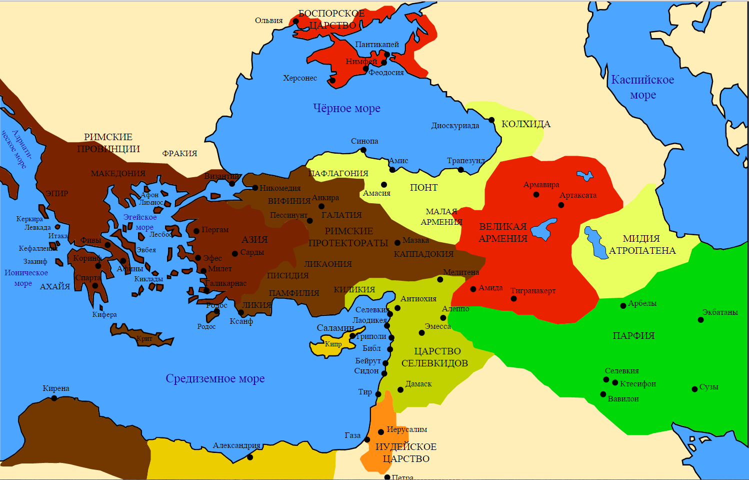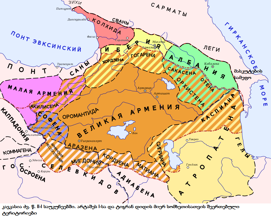 ამასობაში ძალიან გაძლიერდა პონტოს სამეფო, რომლის მეფე მითრიდატე VI ევპატორმა (116-63) სამხედრო კავშირი შეკრა „დიდი არმენიის“ მეფე ტიგრან II-სთან (95-55) და რიგრიგობით დაიპყრო ბოსფორის სამეფო, „მცირე არმენია“, კოლხეთი და შავი ზღვის სამხრეთ-დასავლეთ სანაპიროზე მდებარე ბერძნული პოლისები. პარალელურად ტიგრან II-მ შეიერთა პართიის ჩრდილო-დასავლეთ მხარეები, კავკასიის ალბანეთის სამხრეთი, სოფენა, ფინიკია და კილიკიის ნაწილი. ძვ. წ. 90-88 წლებში ტიგრანმა ქართლის სამეფოს ჩამოაჭრა სამხრეთ მხარეები – წუნდა, არტაანი და კამბეჩოვანი. ამასთან იბერიის მეფე არტაგი ალბანეთის მეფესთან ერთად ტიგრანის უზენაესობას აღიარებდა (ამავე დროს არტაგს ტიგრანის და ესვა ცოლად) და ლაშქარს უგზავნიდა სამხედრო კამპანიების დროს.