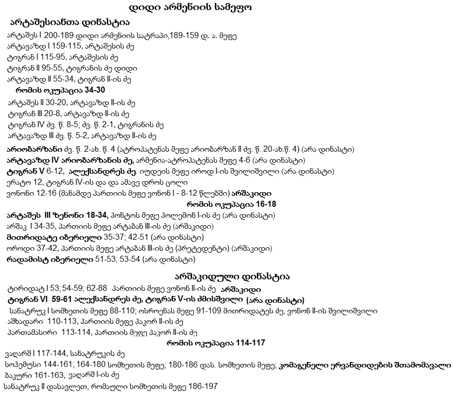 ამ პერიოდში ქართლში მეფობდნენ: მცხეთას არმაზელ კაოსის ძე (30-2) და მცხეთას არშაკ III ფარსმანის ძე (ძვ. წ. 29-13).