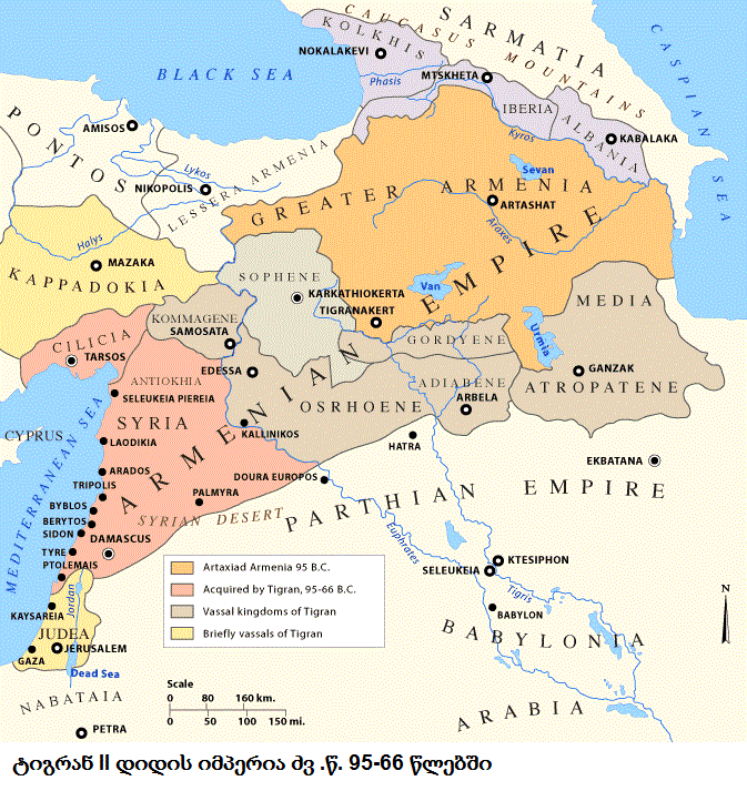ძვ.წ. 95 წელს დიდი არმენიის ტახტი დაიკავა ტიგრანის ვაჟმა ტიგრან II-მ (95-55), რომელსაც დიდი იმპერიის აშენება სწყუროდა.