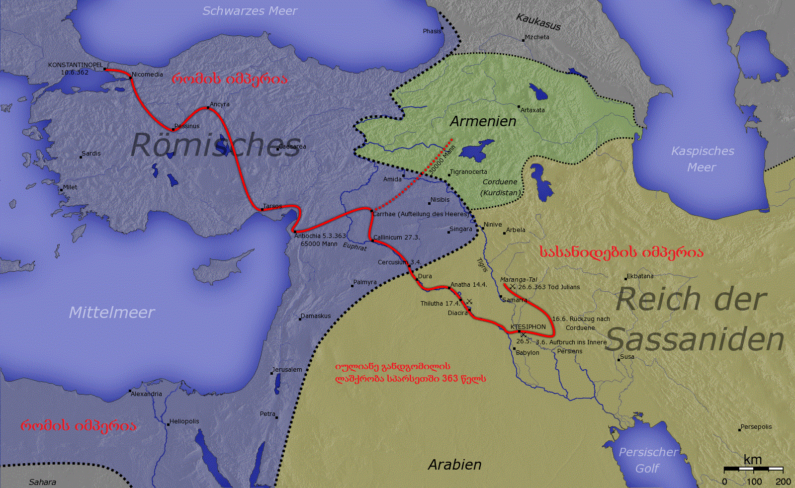 და უფროსად გაბოროტნენ და შეკრიბეს ყოველნი სპასალარობასა ქვეშე არშაკ და არმაზელისა, ქართველთა მეფეთასა, და ყოველნი მიეტევნენ სუმბატს და სპათა სომხეთისათა. მაშინ იქმნა ბრძოლა დიდ-ძალი მათ შორის, და გაგრძელდა მათ შორის ბრძოლა სამ ჟამითგან (საათიდან) ვიდრე მეცხრედ ჟამადმდე (საათამდე). და მოსწყდა ორგნით-ვე ურიცხვი, და აღხდა მტვერი, და დღე ბნელ იქმნა ვითარცა ღამე. და აღრეულ იყვნეს ერთგან და ვერ-ღა-რა იცნობდეს ერთმან-ერთსა მტვერისა მისგან.