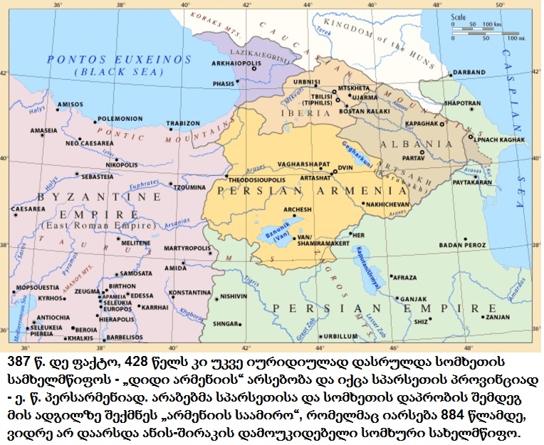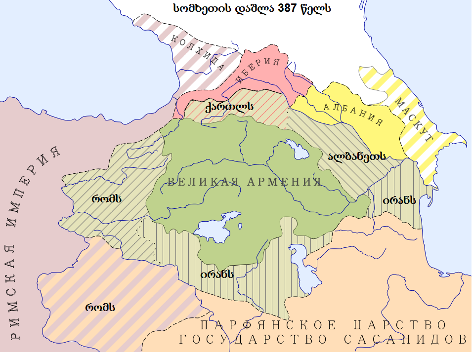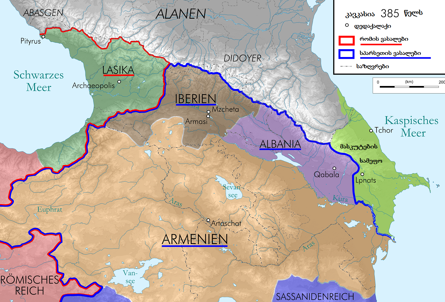 ხოლო ამისთვის სომეხთა უკუმოსცეს საზღვარი ქართლისა, ქალაქი წუნდა და ციხე დემოთისა, ჯავახეთი და არტაანი (კოლას ჩათვლით). და ამიერითგან იქმნენ მოყვარე სომეხნი და ქართველნი და ოვსნი. და სამნი-ვე ერთობით ებრძოდეს მტერთა. და აღესრულნენ არშაკ და არმაზელ, ნუგეშინისცემულნი დიდად. რამეთუ სიმხნითა მათითა უკუ-მოსცეს საზღვარნი ქართლისანი.