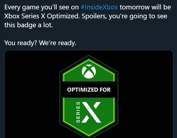 Xbox-ის ოფიციალურ Twitter-ზე გამოქვეყნდა შემდეგი შეტყობინება: „ყოველი თამაში, რომელსაც ხვალ Inside Xbox-ზე იხილავთ, ოპტიმიზირებული იქნება Xbox Series X-ისთვის. სპოილერები – თქვენ ხშირად დაინახავთ ამ ნიშანს“. მაშ ასე, ცნობილია ჩამონათვალიდან…