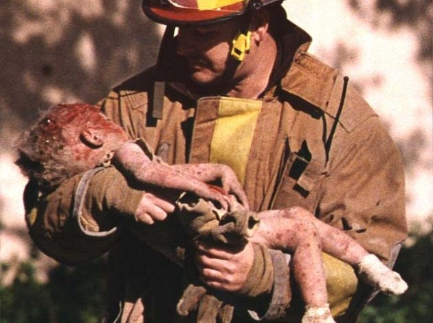მეხანძრე და ბავშვი ოკლაჰომას დაბომბვის შემდეგ