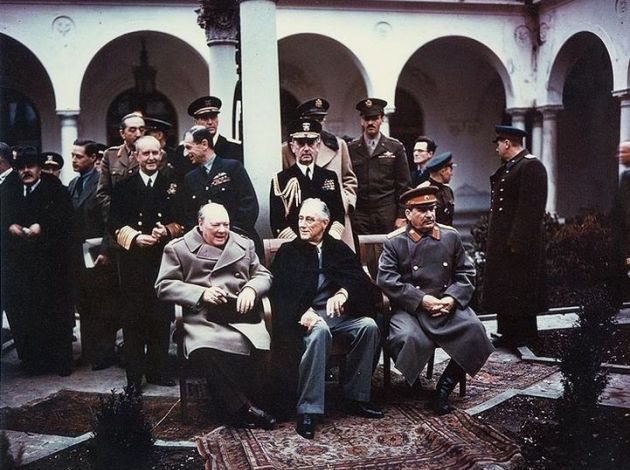 ფოტო გვიჩვენებს მოკავშირე ძალების სამ ლიდერს – უინსტონ ჩერჩილი (დიდი ბრიტანეთი), ფრანკლინ რუზველტი (აშშ) და იოსებ სტალინი (სსრკ). ისინი 1945…