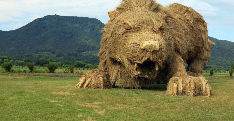 გიგანტური ჩალის ცხოველები იაპონიის მინდვრებში.