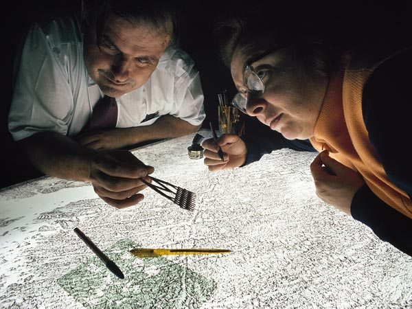 კარტოგრაფები ბრიუს ჰიზენი და მერი თარპი ყურადღებით აკვირდებიან ოკეანის ფსკერის რუკას. ეს რუკა მათ National Geographic-ის დახმარებით შეადგინეს და თავის სფეროში პიონერი იყო. ეს ახალი საფეხური გახლდათ ძალიან დიდი წინსვლა და კრეატიული ნაბიჯი კარტოგრაფიაში. მისი მეშვეობით უამრავმა ადამიანმა დაინახა, რომ ოკეანის სიღმეებს დიდი ხნის ისტორია აქვთ.