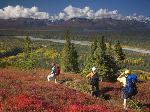 დენალის ეროვნულ პარკში მოგზაურები ათვალიერებენ ალასკას მთიან ტერიტორიებს. ისინი მიუყვებიან ქვანახშირის უბის ბილიკს ალპური მდელოების გასწვრივ, რომელიც მყინვარის ნალექით განათებულ მდინარეს გადაჰყურებს.