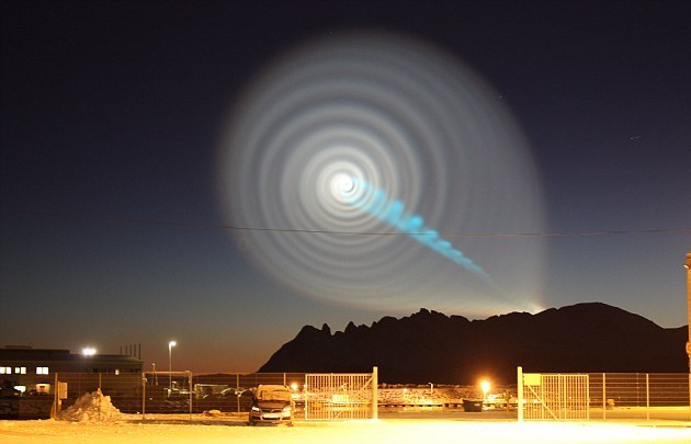 2009 წლის დეკემბერში ჩრდილოეთ ნორვეგიის ცაზე უზარმაზარი სპირალი გამოჩნდა, რაც ბევრმა უცხოპლანეტელთა ვიზიტად აღიქვა. უჩვეულო ვიზუალური ფენომენი 2-3 წუთი გრძელდებოდა და წარმოადგენდა ჰორიზონტზე მოკაშკაშე ლურჯ ნათებას, რომელიც თანდათან იმატებდა სიმაღლეში, შემდეგ მიიღო თეთრი შეფერადება და საბოლოოდ გაქრა. რუსეთის მთავრობის მხრიდან გაკეთებული ოფიციალური ახსნა არც ისეთი ფანტასტიკური იყო: აღმოჩნდა, რომ ეს ყოფილა რუსული სამხედრო რაკეტის წარუმატებელი ტესტი, სპირალური ეფექტი კი ან ძრავის დაშლამ გამოიწვია, ან საწვავი მასალის წვამ, სანამ არ ამოიწურა და რაკეტა ზღვაში არ ჩავარდა.