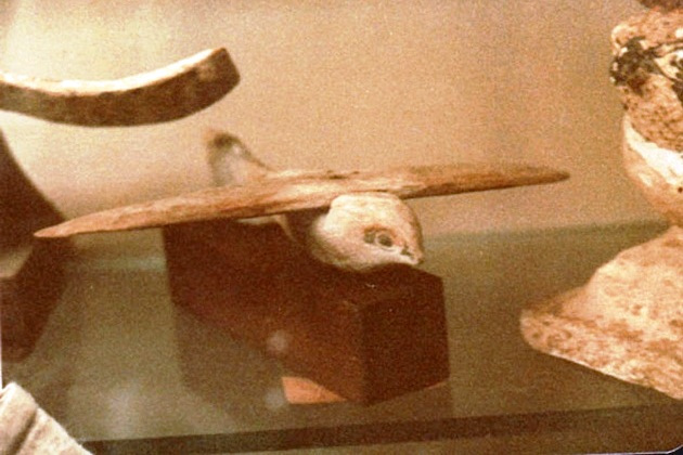 აღმოაჩინეს 1898 წელს სამარხების გათხრისას ეგვიპტის რეგიონ საკარაში. სიაში მოყვანილი სხვა პუნქტების მსგავსად, მასაც უკავშირებენ უცხოპლანეტელებსა და წარსულში არსებულ საფრენ ტექნოლოგიებს. „უძველესი ასტრონავტების თეორიის” მიმდევრებს სჯერათ, რომ ეს ნივთი მფრინავი აპარატის მოდელი იყო, რადგან მისი ვერტიკალური სტაბილიზატორი (კუდი) მოგვაგონებს თვითმფრინავის დაბოლოებას, როცა ფრინველებს, როგორც წესი, ჰორიზონტალური კუდი აქვთ. გარდა ამისა, მას არ აქვს ფეხები, ხოლო ფრთების კუთხეს აეროდინამიკურ მანევრირებას უკავშირებენ. თუმცა მკვლევართა მიერ ჩატარებულმა ტესტებმა, რომელიც მოდელის მიხედვით საფრენი მოწყობილობის შექმნას ისახავდა მიზნად, აჩვენა, რომ მას არ გააჩნია ფრენისთვის საჭირო აეროდინამიკური თვისებები. თანამედროვე მეცნიერული თეორიები გვამცნობენ, რომ ის ან რელიგიური არტეფაქტი იყო, ან უბრალოდ ბავშვების სათამაშო.